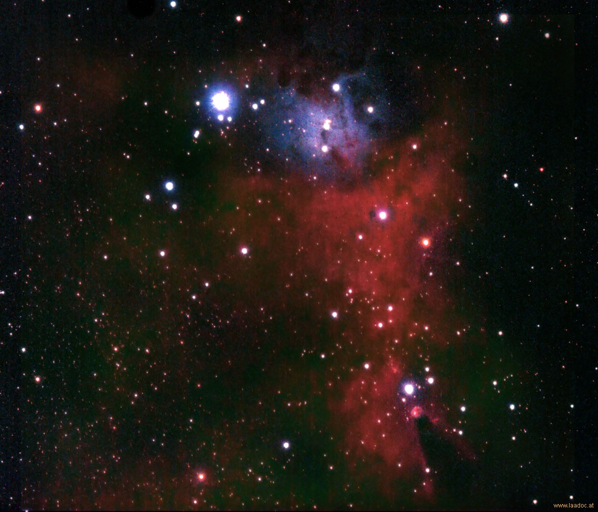 Der Weihnachtsbaum Cluster passt zur Jahreszeit Winter. Im Sternbild Monoceros bietet er einen ästhetischen Anblick mit dem Sternentstehungsregion Konus Nebel. Seine Distanz zu uns entspricht 2500 Lichtjahren.