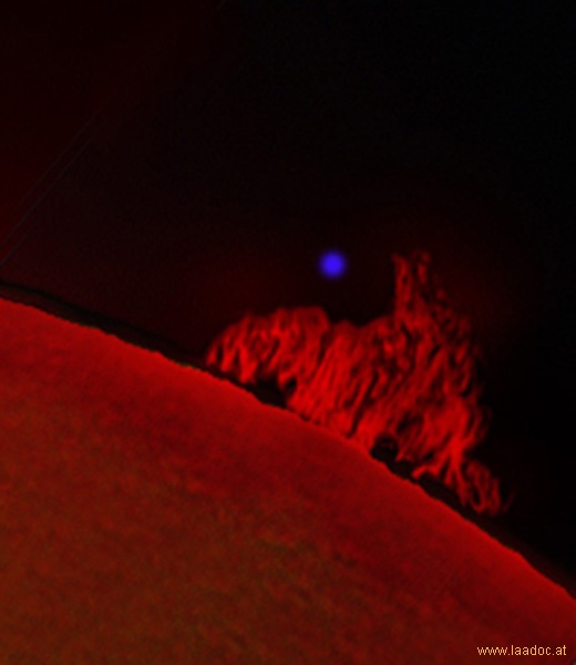 Der blaue Punkt entspricht der errechneten Größe der Erde und ist künstlich eingefügt.