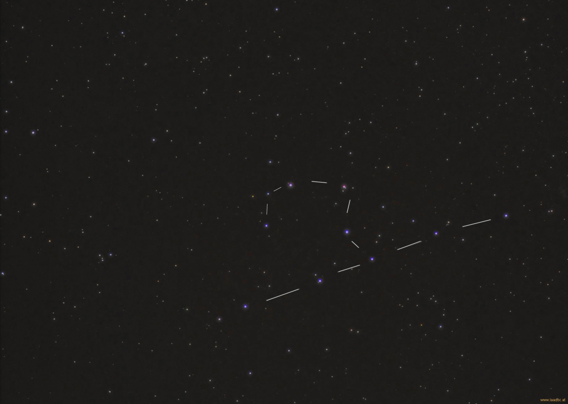 Collinder 399 oder Brocchis Haufen,ein Tolles Objekt für Fernglas und kleine Teleskope (in görößeren Teleskopen geht der Gesamtblick verloren), ist eine Gruppe von Sternen (Sternmuster oder Asterismus), der als offener Sternhaufen katalogisiert ist, und liegt im Sternbild Fuchs. Mit bloßem Auge ist ein diffuser Fleck zu erkennen, mit dem Fernglas oder kleinen Teleskop erkennt man die charakteristische Form. Der Sternhaufen besteht physikalisch wohl nur aus den sechs helleren Einzelsternen der Größenklasse 6 bis 7, jedoch werden zuweilen etwa 30 weitere Sterne mit zu diesem Haufen gezählt. Ob die sechs hellen Sterne tatsächlich eine physikalische Gruppe bilden, wird bezweifelt, allerdings haben Hall und Landingham 1970 durch Untersuchung der Eigenbewegung eine gemeinsame Bewegung festgestellt[1] Der geometrische Eindruck der helleren Einzelsterne ist der Grund für den manchmal gebräuchlichen Trivialnamen Kleiderbügel(haufen).