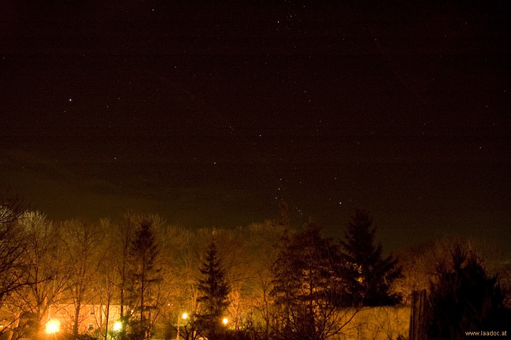 Der aufgehende Orion im sinnlosen Lichtkegel des Thermenparks.