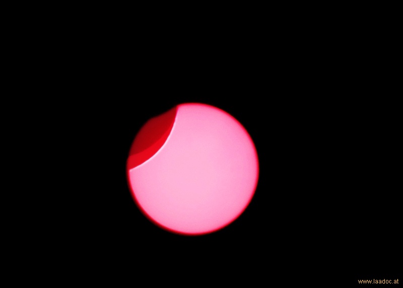 Der Verlauf der Sonnenfinsternis in Laa an der Thaya, am 1. August 2008, um 11:00h, 11:28h und 11:43h MESZ; Ein Composit aus 3 Bildern.
