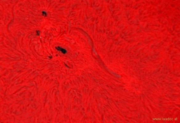 Sonnenfleck 1164 und Filament am 5. März 2011