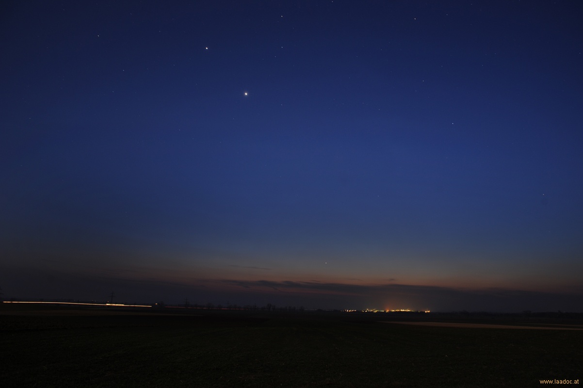 Plantes lined up. March 5th 2012. Mercury near horizon, above and along the ecliptic Venus and Jupiter