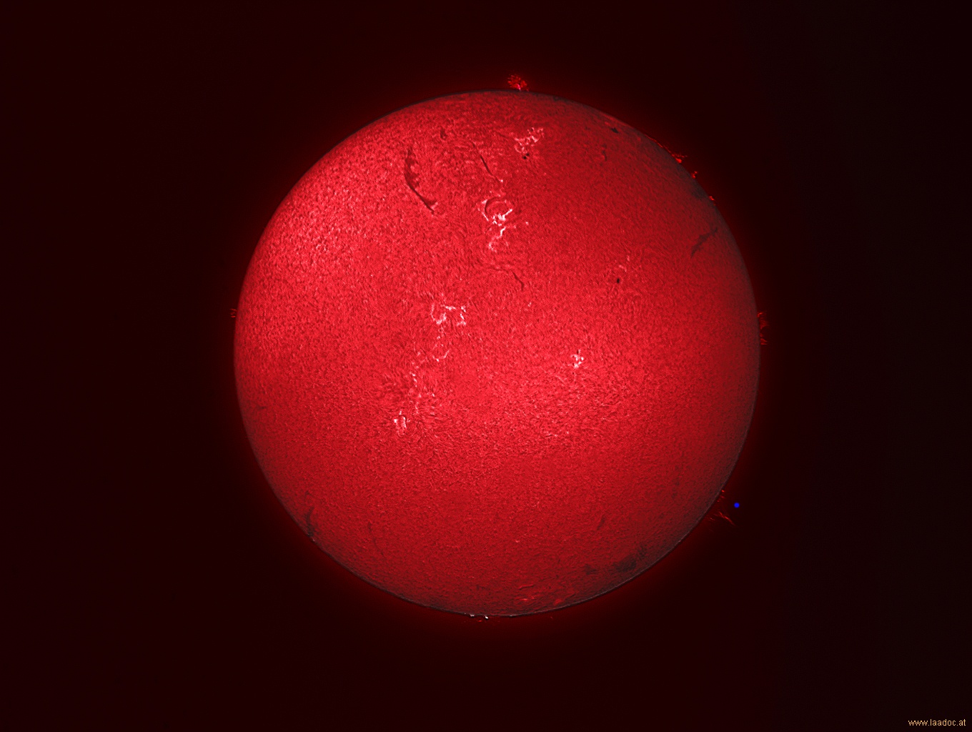Sun, 2013-10-19. The blue dot (by app. 4h) is artificial and represents the size of planet earth, the home of 7 billions humans.